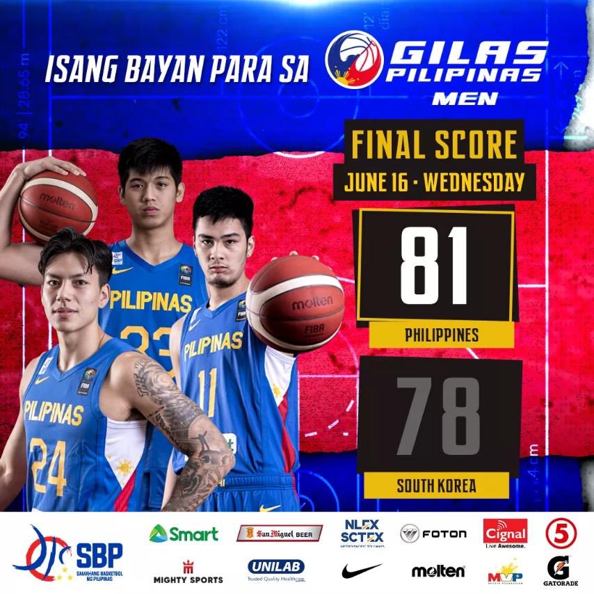 Sbp On Twitter Laban Pilipinas Gilas Pilipinas With A Come From Behind Win Over South Korea 81 78 See Gilas Pilipinas Back In Action Against Indonesia On June 18 At 6pm Live