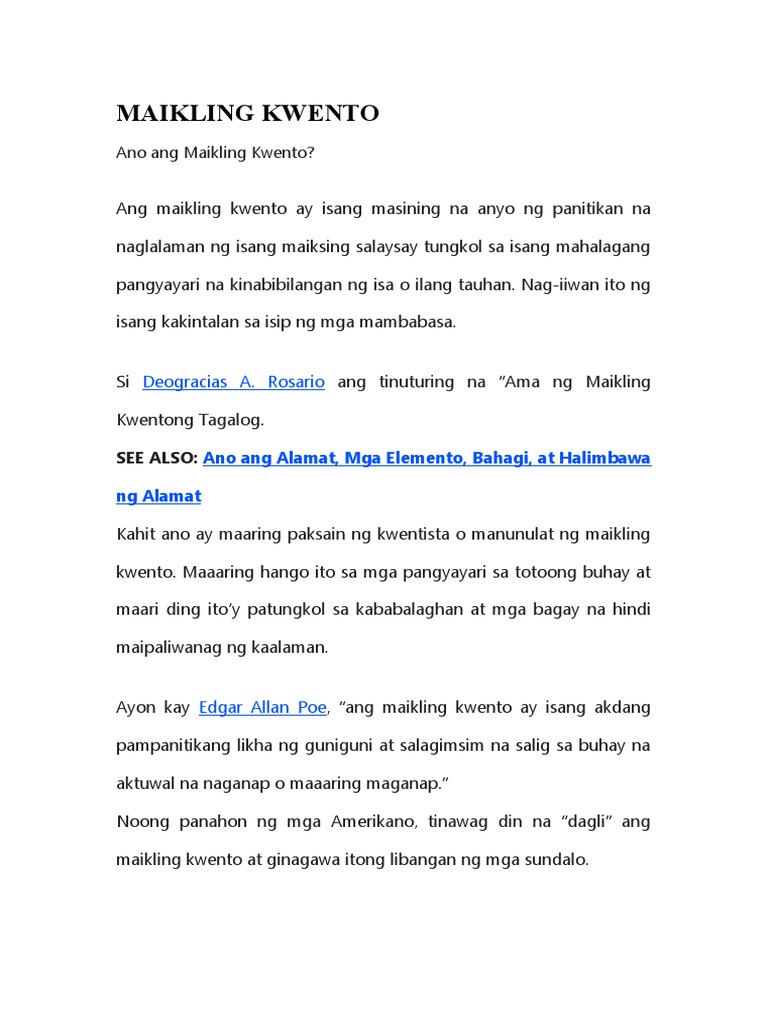 Walang opisyal na pinagmulan ang maikling kwento bago pa man dumating ang mga dalubhasa dito sa mundo ay ibat ibang maiikling kwento ang dumadaloy sa ugat ng mundo sa pangalan ng kwento literal na ito ay ikinukwento at nadugtungan lamang ng maikli na. Wakas- Ito ang resolusyon o ang kahihinatnan ng kuwento. 3cbc74dacd jiske rone se ma roye song of yahaan mai ghar ghar kheli.