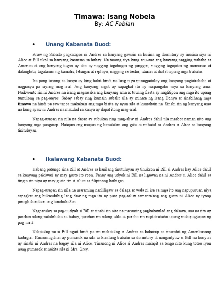TIMAWA Sa paksang ito tatalakayin natin kung ano nga ba ang buod at mahahalagang aral na makukuha sa kwentong Timawa. Halimbawa ng tulang nakilala sa bawat panahon ng katutubo Answers. Pagsasanay 1 Tukuyin mo mula sa binasa mong bahagi ng nobelang Timawa ang mga pangyayaring nagpapakita ng ibat ibang tunggalian.